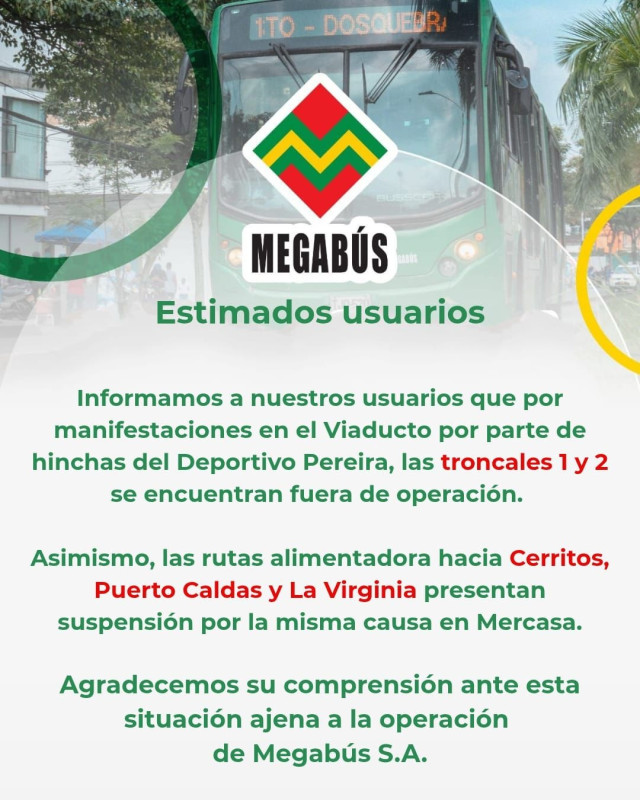 En un comunicado publicado tras los bloqueos viales, la barra Lobo Sur Pereira emitió un comunicado en sus redes sociales en el que ofreció "disculpas a quienes se vieron afectados por los cierres viales".