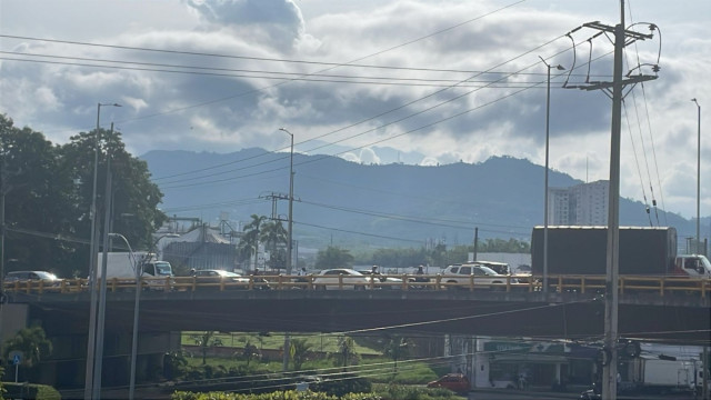 Vista del puente Industriales (en la rotonda de Postobón), alrededor de las 8:00 de la mañana.