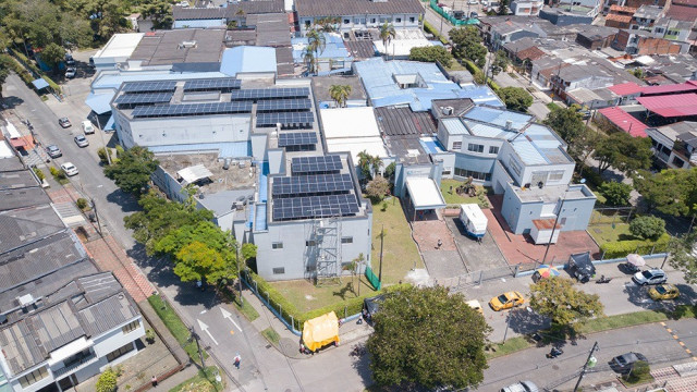 El Hospital Santa Mónica de Dosquebradas avanza hacia la transición energética instalando 198 paneles solares en su sede principal.