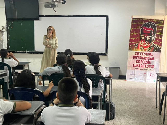 Desde Colombia, la poeta Luz Mary Giraldo, nacida en Ibagué, celebró el recibimiento que tuvieron los niños que aprovecharon la pausa para pedirles autógrafos y fotos.