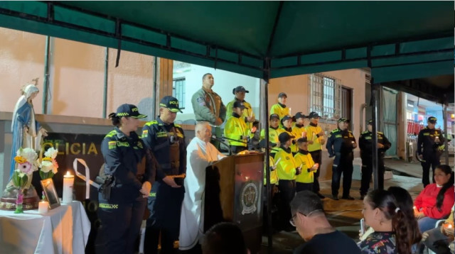 En medio de las velas encendidas y las oraciones, la coronel Muriel aseguró que la institución mantendrá su respaldo a los seres queridos de los policías fallecidos: