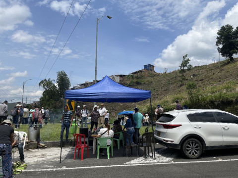 Campesinos de varias veredas y los dos corregimientos de Dosquebradas (Risaralda) protestan de manera pacífica en la vía Pereira - Manizales, por inconformidades en el aumento del impuesto predial.