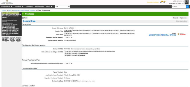 El proceso contractual, identificado como SMI-LP-367-2025, contempla la continuación de la Fase I de esta vía estratégica para la movilidad de la ciudad. De acuerdo con la información oficial, el contrato tendrá una duración total de 15 meses.