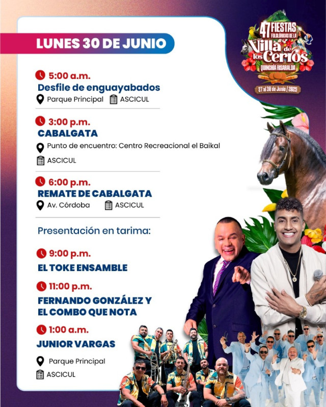 La programación, organizada por la Asociación Cívica Cultural de Quinchía, comienza el viernes 27 de junio y se extenderá hasta el lunes festivo 30, con actividades gratuitas para todas las edades y gustos.