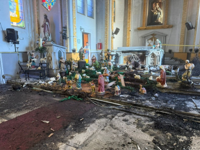 Fotos | Cortesía | LA PATRIA Así quedó por dentro la parroquia Nuestra Señora de la Valvanera, en Pereira, luego del incendio que se presentó en la zona donde está ubicado el pesebre.