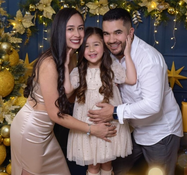 Fabián Andrés Zuluaga Vélez, fundador y administrador de Mototienda Manizales; Daniela Blandón López, administradora del negocio, y Violetta Zuluaga Blandón, su hija.