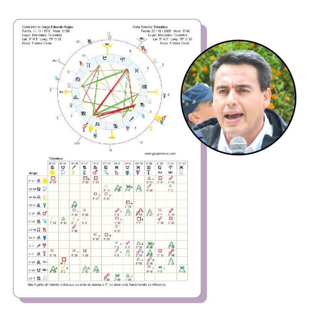 Jorge Eduardo Rojas inicia el año con una energía expansiva y generosa de Júpiter en aspecto armónico con su luna natal, que lo lleva a buscar ideales cada vez más altos y a materializar lo que se proponga. Buen año para organizar la casa en la que habita y la casa que dirige, en este caso Manizales.