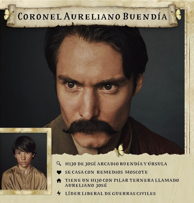 Coronel Aureliano Buendía, interpretado por Claudio Cataño de adulto, Santiago Vásquez como adolescente, y en su niñez por Jerónimo Echeverría y Jerónimo Barón.