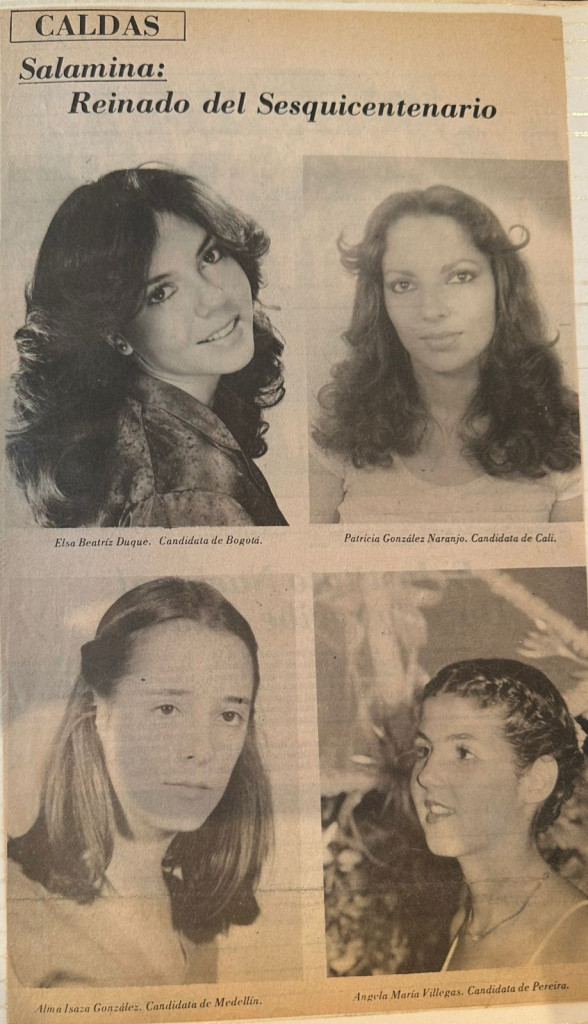 Elsa Beatriz integró el ramillete de aspirantes con Patricia González Naranjo, de la colonia de Cali; Alma Isaza González, de Medellín, y Ángela María Villegas, de Pereira.