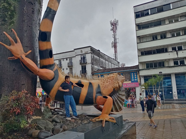 Una iguana negra con naranja es el nuevo atractivo del parque de Bolívar de Chinchiná.