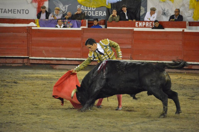 Derechazo de Manolo Castañeda al toro Florista de 480 kg de la ganadería Ernesto Gutiérrez.
