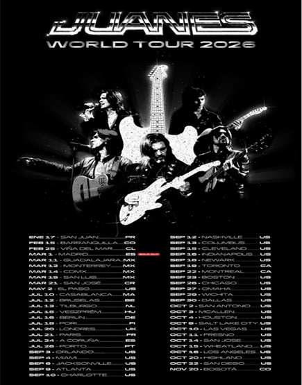 Después, 'Juanes World Tour 2026' también incluirá presentaciones en México, con paradas en Guadalajara, Monterrey y San Luis Potosí, así como una participación en un festival en Costa Rica y un esperado regreso a Europa.
