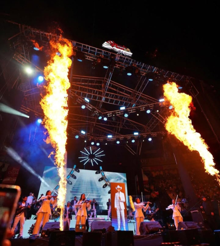 A las 11:48 de la noche apareció en escena la banda del aventurero, de los momentos más esperados de la noche.