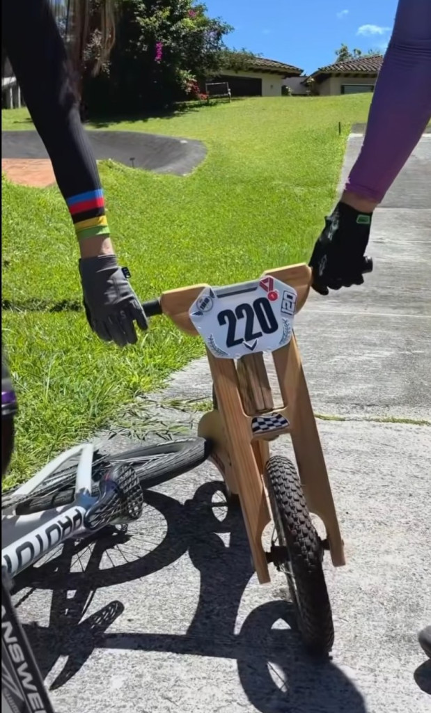 Mostraron una pequeña bicicleta de BMX en representación de su bebé. El 220 es la suma de los números que representan a los deportistas.