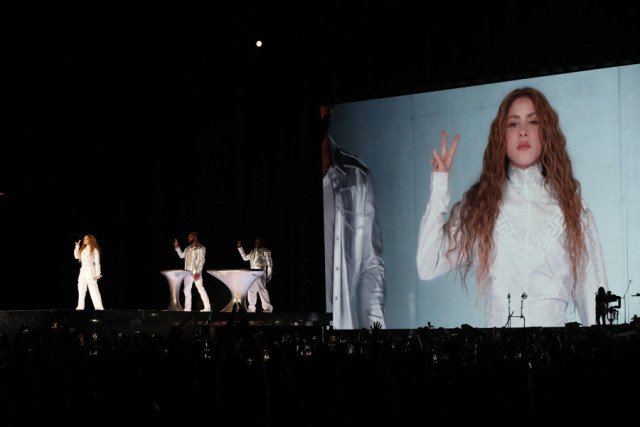 El escenario abarrotado también acompañó el momento emotivo provocado por la aparición en pantalla gigante de un video mostrando a Shakira cuando era bebé y luego una niña que comenzaba a cantar hasta convertirse en una artista, imágenes que precedieron a la interpretación de "Pies descalzos, sueños blancos".