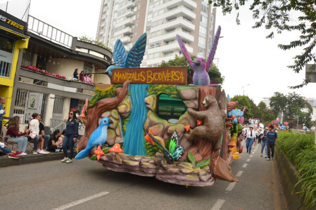 Los asistentes se sorprendieron con las enormes carrozas que exaltaban el café que se produce en la región y no dudaron en hacer un registro con sus celulares. Esta tiene una medida de 4 metros de altura, 10 metros de largo y 3 metros de ancho.