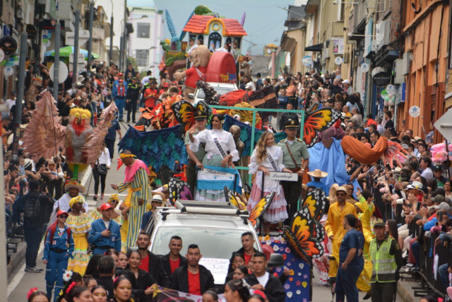 Las representantes de igual número de países recorrieron la ciudad en carrozas diseñadas por Paola Rodríguez, artista y escultora del Carnaval de Negros y Blancos, y pionera del Taller Artístico y creativo Arlexor junto con su compañero Arlex Ortega Montenegro.