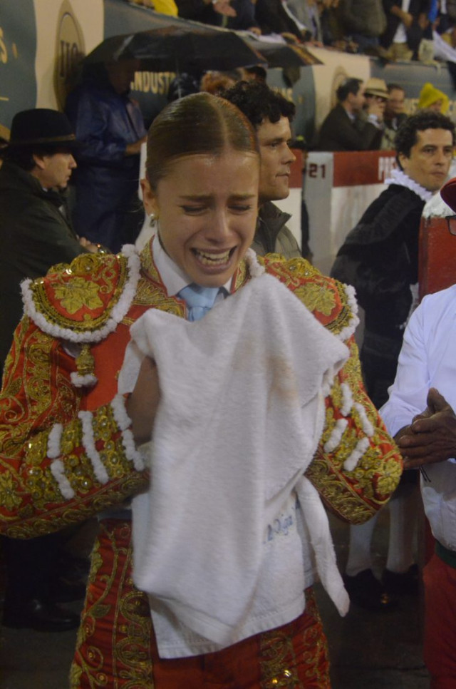 En su primer novillo, el tercero de la tarde, fue el momento de subir la temperatura en el ruedo, su faena al novillo Amadis de Grecia de 382 kg de la ganadería de Ernesto Gutiérrez, la llevó a ser merecedora del pasodoble Feria de Manizales. Es la segunda vez durante esta semana ferial que se hacen merecedores de este reconocimiento.