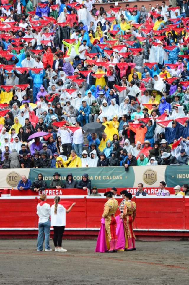 El tendido joven de Manizales le realizó un homenaje a los tres alternantes de la tarde lluviosa del sábado.