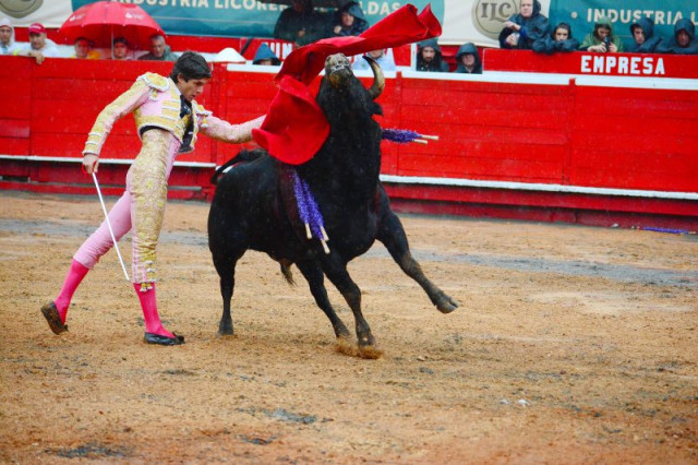 Derechazo de David de Miranda a su toro Azulejo de 504 kg de la ganadería de Ernesto Gutiérrez.
