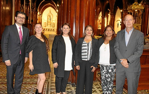 Juan Pablo Duque, Valentina Arango, Nancy Liliana Mahecha, Tania Mackenzie, Bellazmin Arenas y Carlos Eduardo Jaramillo Sanint, rector de la Universidad Autónoma de Manizales.