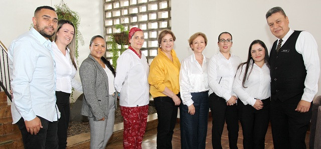 Funcionarios del Club Manizales del Centro: Julio César García Ceballos, Adriana Patricia Duque Tabares, Claudia Heano, Adriana Muñoz, Alexandra Hernández Gálvez, gerente del Club Manizales, Gloria Beatriz Osorio, María del Socorro Jaramillo, Paula Garaviña Ramírez y Carlos Soto.