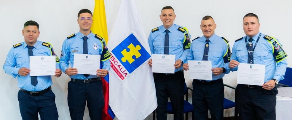 Jorge Alejandro Velásquez Mejía, líder de la Unidad de Reacción Inmediata de la Fiscalía; Lenny Espitia Herrera, coordinadora de la Capacitación de la Fiscalía General de la Nación seccional Caldas; Robert Andrés Montoya Mejía, secretario de Gobierno de Aguadas (Caldas); Juan Felipe Álvarez Castro, secretario de Movilidad de Manizales; y Ricardo Acero Gómez, fiscal.