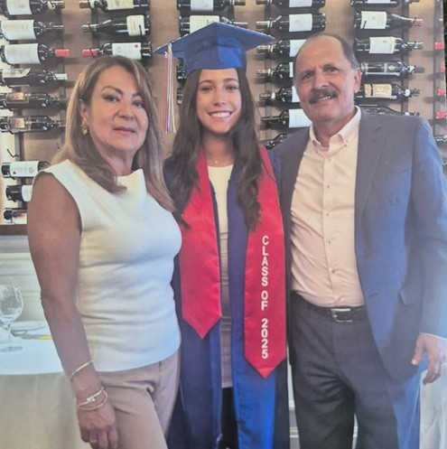 2025-07-18 Sofía González Sánchez obtuvo su título de la High School del colegio Blind Brook High School en New York, Estados Unidos. María Oneida Guarín Escudero, Sofía González Sánchez y José Fernando González Valencia. María Oneida Guarín Escudero, Sofía González Sánchez y José Fernando González Valencia. Autor lapatria.com