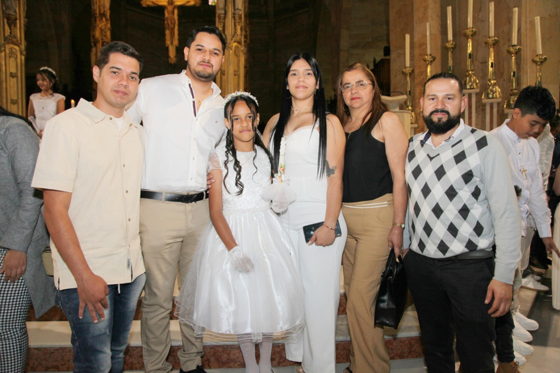 Emmanuel Sánchez Betancourth, en su Primera Comunión, acompañado de sus padres, abuelos y demás familiares.