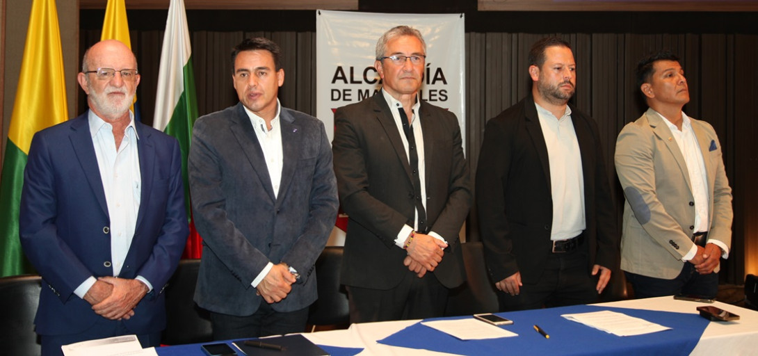 Mesa principal: Henry Gutiérrez, gobernador de Caldas; Jorge Eduardo Rojas, alcalde de Manizales; Mario César Otálvaro, presidente de Acord Caldas; Andrés Duque, secretario del Deporte de Caldas, y Diego Espinosa, secretario del Deporte de Manizales.