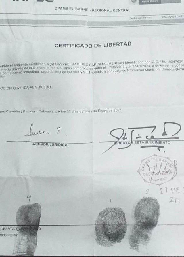 En libertad está Hernán Ramírez Carvajal, alias la Lora, a quien señalaron de asesinar a la estudiante universitaria Yéssica Katerin Aguirre Canchala, quien le pagó por quitarle la vida dentro de la habitación 10 de la residencia Nuevo Milenio, carrera 21 Nº 17-34, de la capital de Caldas, el 26 de febrero del 2017, a eso de las 9.15 de la noche.