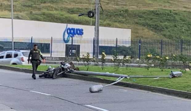 En mayo del año pasado, otro conductor de moto se estrelló contra un poste a la altura de Aguas de Manizales, en sentido Mall Plaza - San Rafael. Pese a lo aparatoso del accidente, sobrevivió. Arrancó la estructura desde la base y la tumbó.