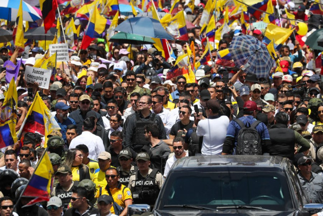 Con el lema 'Firmes por Ecuador', el propio mandatario convocó esta marcha que llegó hasta la sede del tribunal constitucional ecuatoriano para protestar contra la suspensión de una serie de artículos de las denominadas leyes de Solidaridad Nacional, Integridad Pública e Inteligencia.