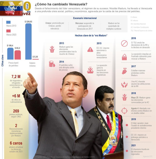El 5 de marzo del 2013, la llamada revolución bolivariana perdió a su fundador, Hugo Chávez, quien falleció aquella tarde, tras 13 años, un mes y tres días como presidente de Venezuela. La muerte del líder socialista acarreó otras pérdidas que la nación ha ido asumiendo en la última década.