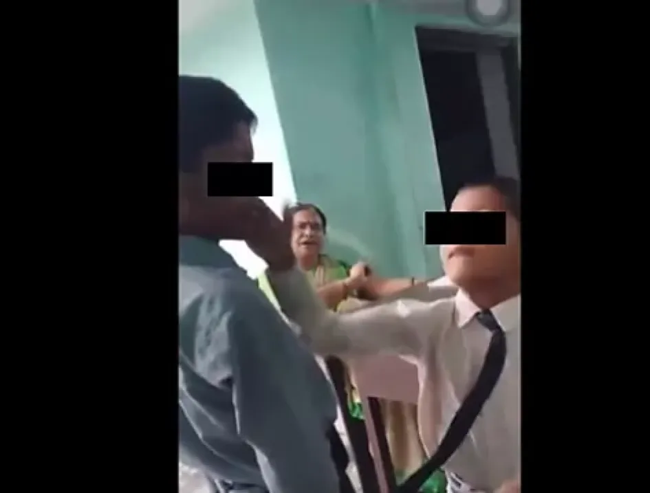 Uno de los alumnos propina una nueva bofetada al joven, entre las carcajadas del hombre que graba. Tyagi, por su parte, pregunta al estudiante agresor "por qué le golpea así".