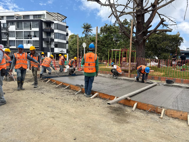 La construcción del bulevar de La Estrella, en Manizales, continúa su ejecución. Este sábado (21 de marzo) se realizó el vaciado de concreto en 50 metros lineales en la glorieta del parque principal del sector.