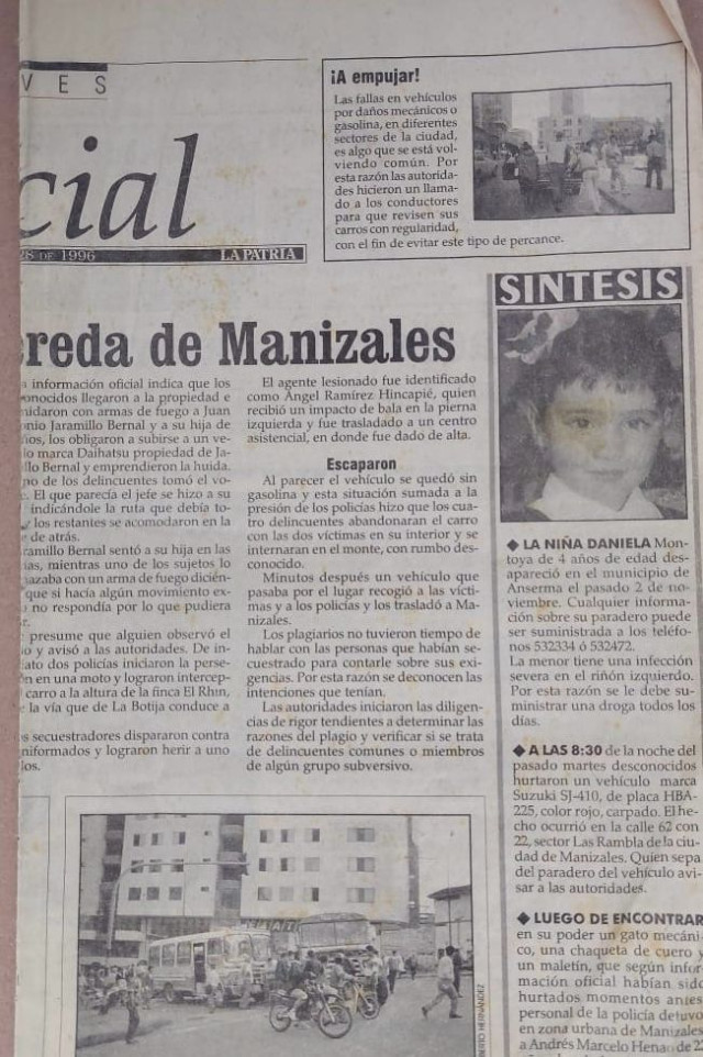 La buscaron todas las autoridades colombianas. Fue una de las niñas que más salió en los medios de comunicación, incluyendo el periódico LA PATRIA.