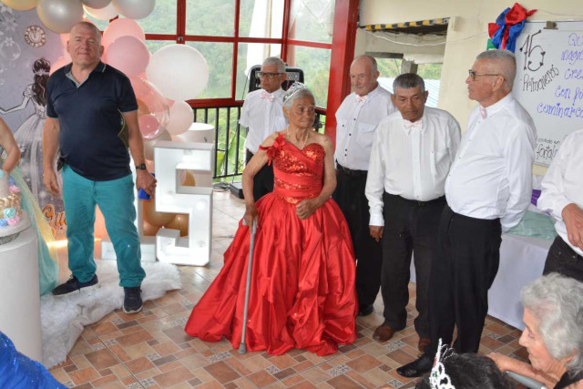 María del Carmen Torres tiene 77 años, es de Manzanares y es una de las 45 adultas mayores a las que el hogar de paso Mi Jesús les celebró la fiesta de 15 años que nunca tuvieron.