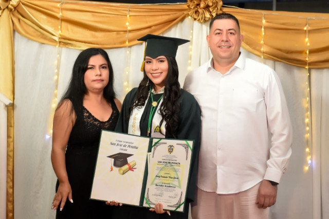 Emily, junto a sus padres, Ramón Emiro Mora y Luz Mary García, el día de su graduación como bachiller.