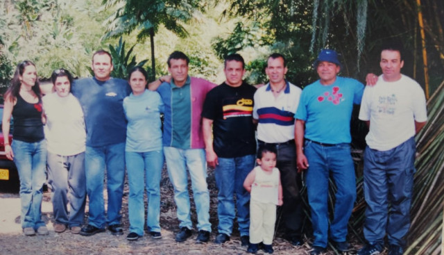 Los hermanos Jiménez Correa, en orden de edad. Gustavo, el mayor, a la derecha. Luego van Dídier, Rodrigo, Gilberto, Ómar, Stella, Mario, María Inírida y María Rosalba. La foto es del 2003.
