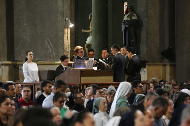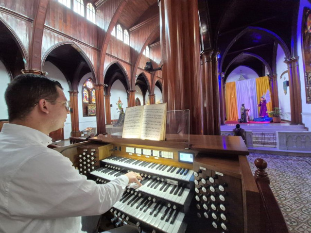 Juan Sebastián Palacio Zuluaga interpretando el órgano digital de la Basílica Menor de la Inmaculada Concepción de Manizales.