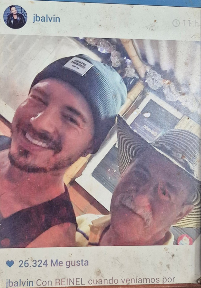 J Balvin subió a su Instagram una foto con don Rey, y una copia aparece en el muro de visitantes ilustres. “La primera vez vino flaquito y calvito; después, ya más famoso, se cambiaba aquí cuando tenía concierto”.