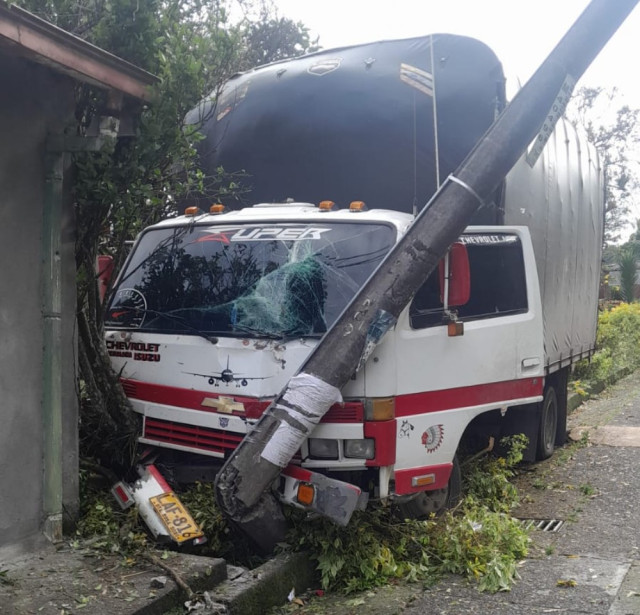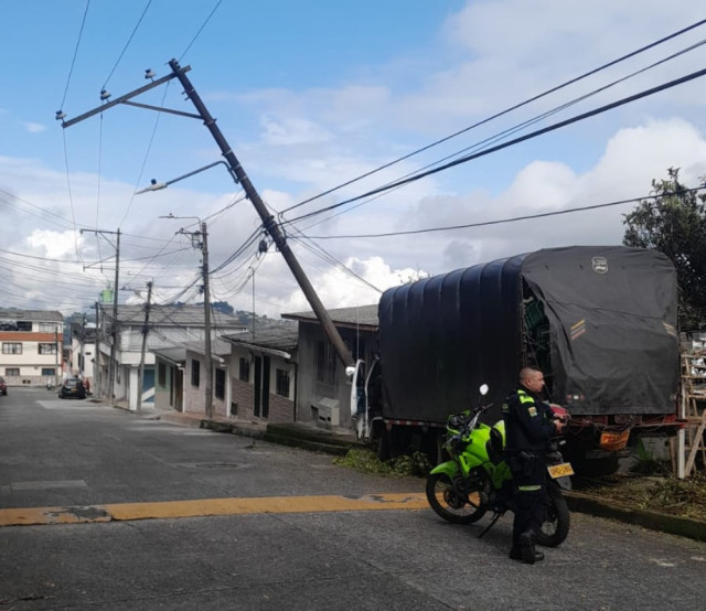 En la madrugada de este jueves (1 de mayo), en el barrio Fátima de Manizales, un camión NPR se quedó sin frenos y chocó de frente contra un poste de luz, por lo que dejó al sector sin energía eléctrica.