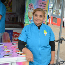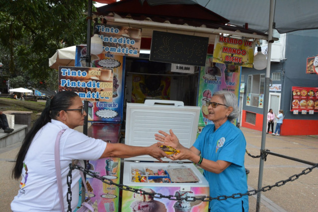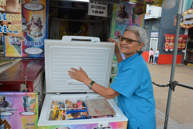 Carmenza Antonia Patiño Franco (derecha) vende helados y regala sonrisas.