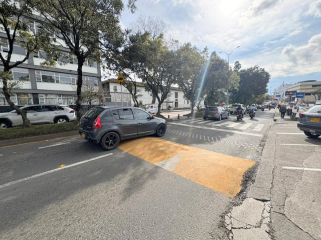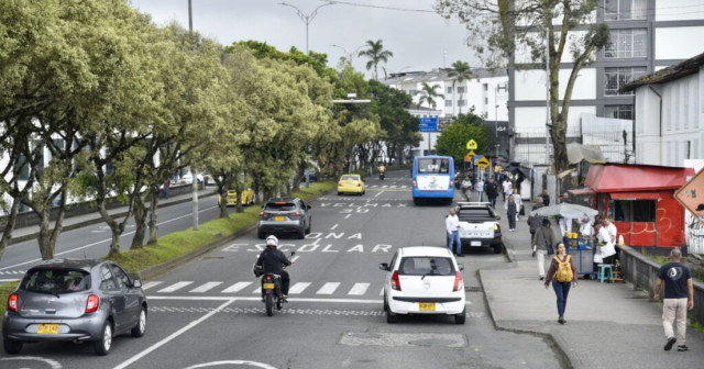 Lento pero seguro, el tránsito en la avenida Santander mejoró su acogida a los peatones frente al Instituto Universitario, en Manizales.