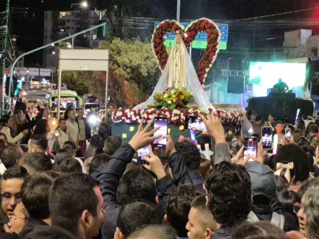 Durante todo el recorrido, la imagen religiosa estuvo de cara a la comunidad y no de espaldas a ella.