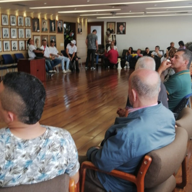 10:40 a.m. Levantan el bloqueo y se dirigen al piso 15 de la Alcaldía de Manizales para dialogar con el alcalde Marín.