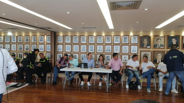 11:41 a.m. Llega el alcalde, su esposa, Valentina Acevedo, y los secretarios de Gobierno, Salud, Obras Públicas. También están el personero y el coronel de la Policía Metropolitana de Manizales. Aún no empieza la reunión. Les ofrecieron a todos un refrigerio y el alcalde saludó a uno por uno de los asistentes.