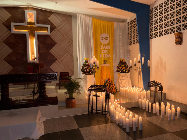 Templo Nuestra Señora del Pilar, en Villa Pilar Manizales. Hora Santa Jueves Santo.