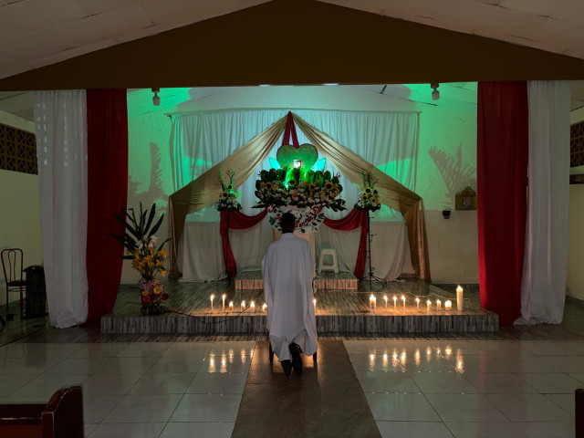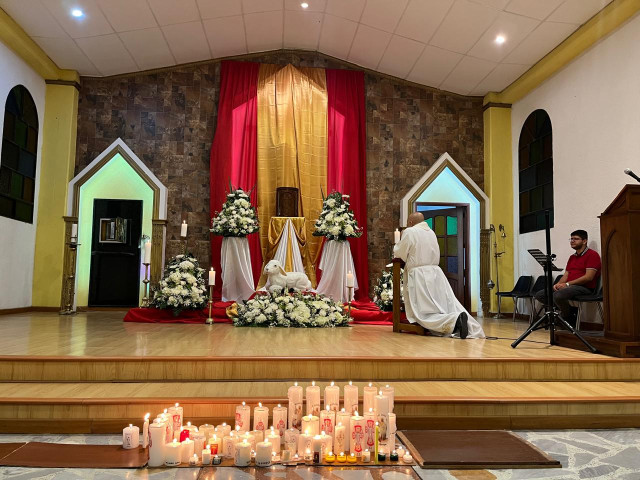 Templo Madre de El Salvador, barrio Los Alcázares de Manizales. Hora Santa Jueves Santo.